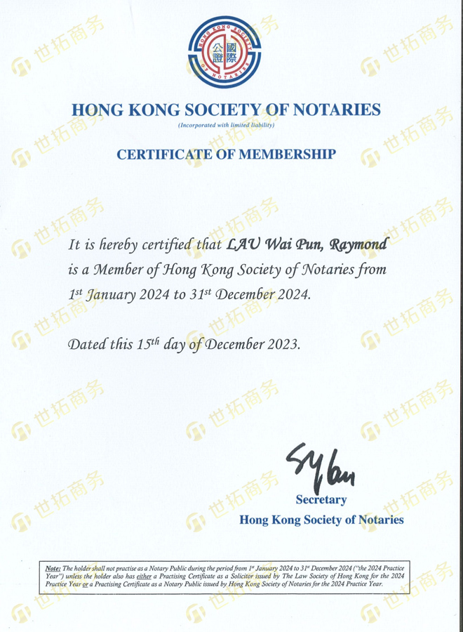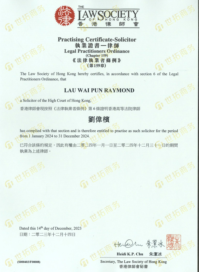香港律師(shī)會(huì)執業(yè)證書(shū)